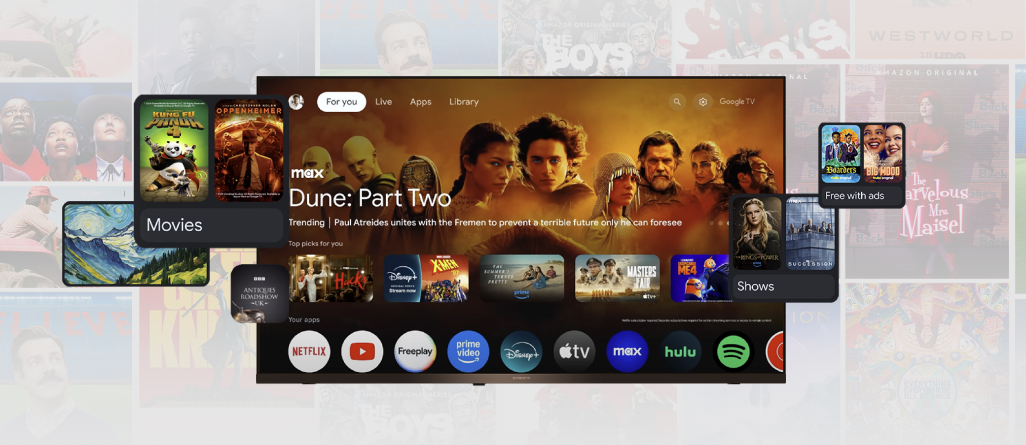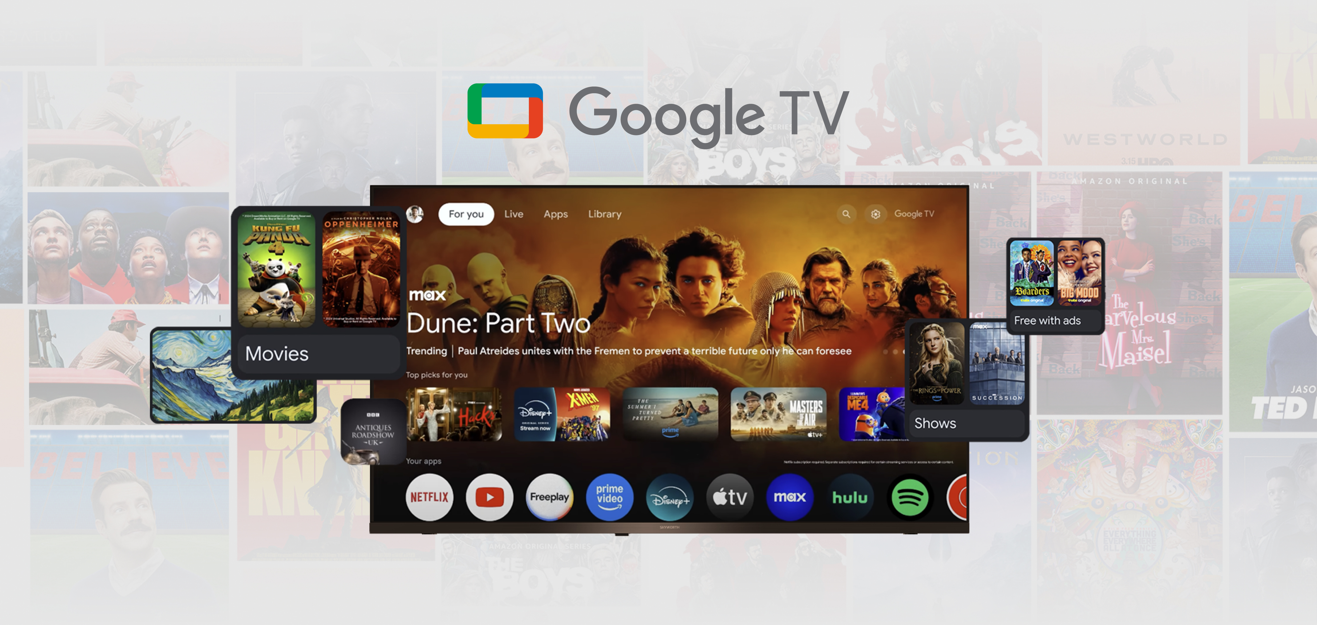Google TV™で映画やドラマ、音楽などの多彩なコンテンツを楽しめます。