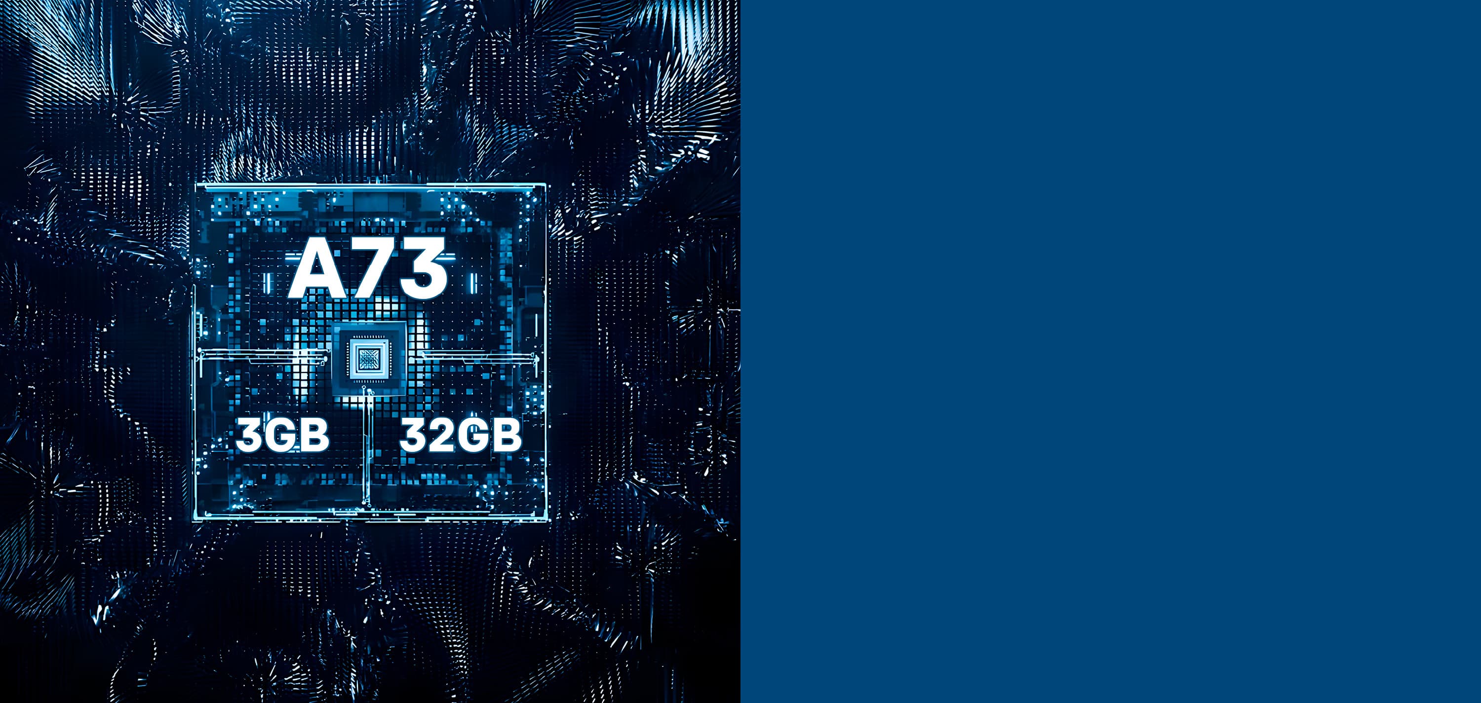 アプリの起動も動画再生もスムーズなクアッドコアA73 高性能CPU を搭載。3GB RAM / 32GB ROM でより多くのアプリを保存できます。